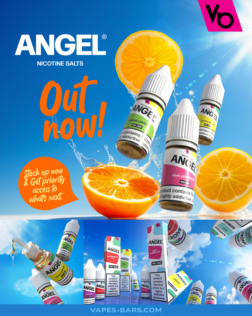 The Vapes Bars Angel 20K vape system includes two 2ml pod cartridges and two 10ml auto-refilling e-liquid containers, all prefilled with Vapes Bar Angel 20mg (2%) nic salt e-liquid. The Angel 20K pods use a premium-quality 1.0Ω mesh coil for even heating distribution, delivering a flavour-packed mouth-to-lung (MTL) vaping experience across its whopping puff count.